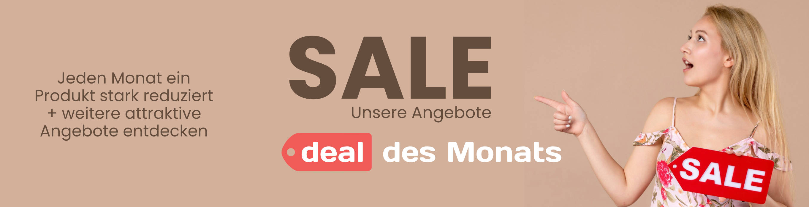 Jeden Monat präsentieren wir unseren „Deal des Monats“! Ein ausgewähltes Produkt erwartet Sie zu besonders günstigen Preisen. Doch das ist nicht alles: Zusätzlich haben wir eine Vielzahl weiterer Produkte für Sie reduziert, damit Sie noch mehr sparen können. Schauen Sie vorbei und entdecken Sie unsere attraktiven Angebote! Verpassen Sie nicht die Chance, hochwertige Artikel zu sensationellen Preisen zu ergattern. Ihr Schnäppchen wartet auf Sie!