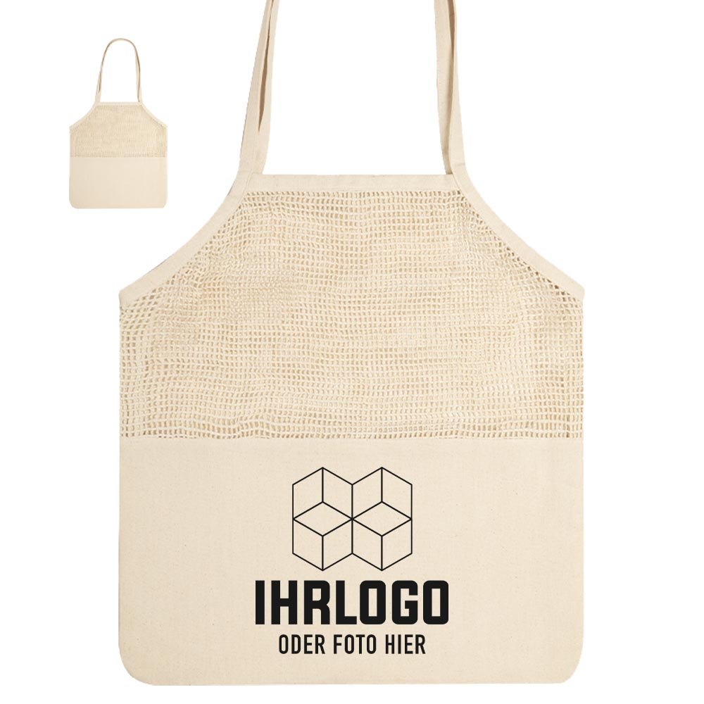 Abmessung: 41 x 45 cm | Gewicht: 110 gr. | Netzbeutel aus naturfarbener Baumwolle 220g/m2, mit einem flachen Bereich zum Bedrucken. 60 cm lange, verstärkte Henkel. | Druckfläche: 29 x 16 cm