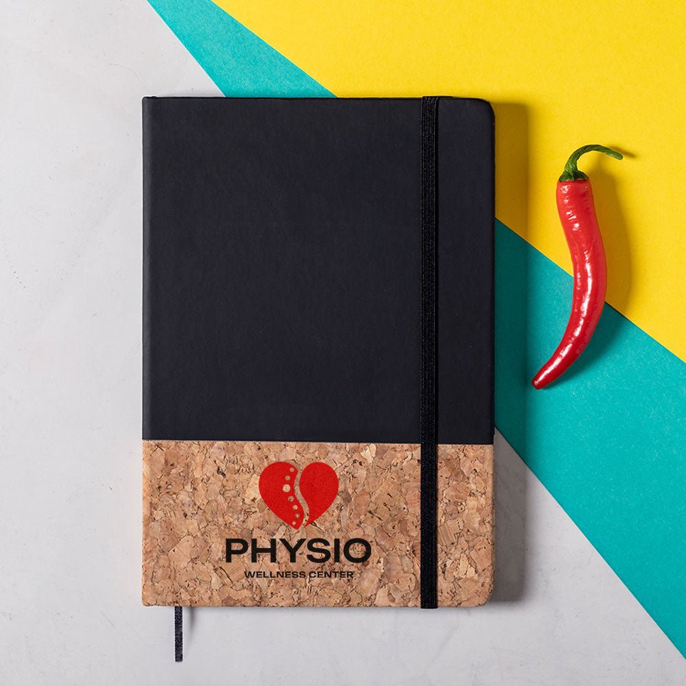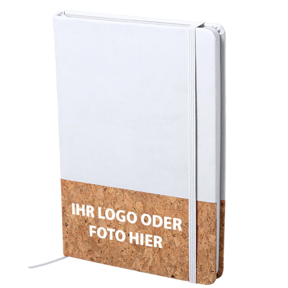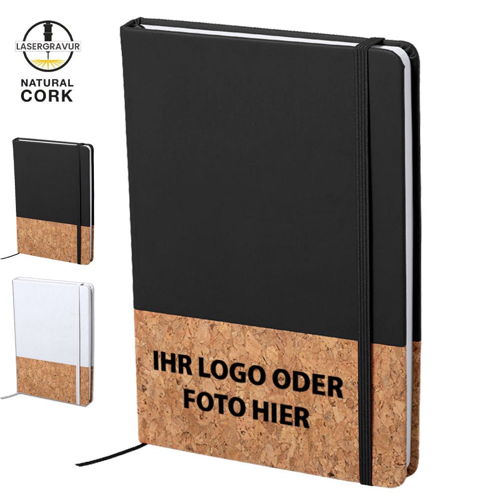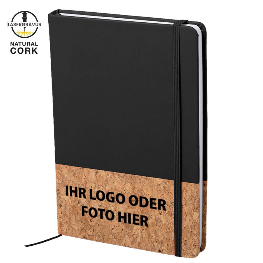 Notizbuch in einer Kombination aus Naturkork und Kunstleder. Mit festem Einband. Bedrucken Sie den Kork-Bereich mit Ihrem Logo oder Wunschtext. Inhalt: 100 unbedruckte Blätter mit natürlicher Oberfläche. Elastischer Einband, inkl. Stofflesezeichen. Bitte beachten Sie unsere Hinweise zur Lasergravur.