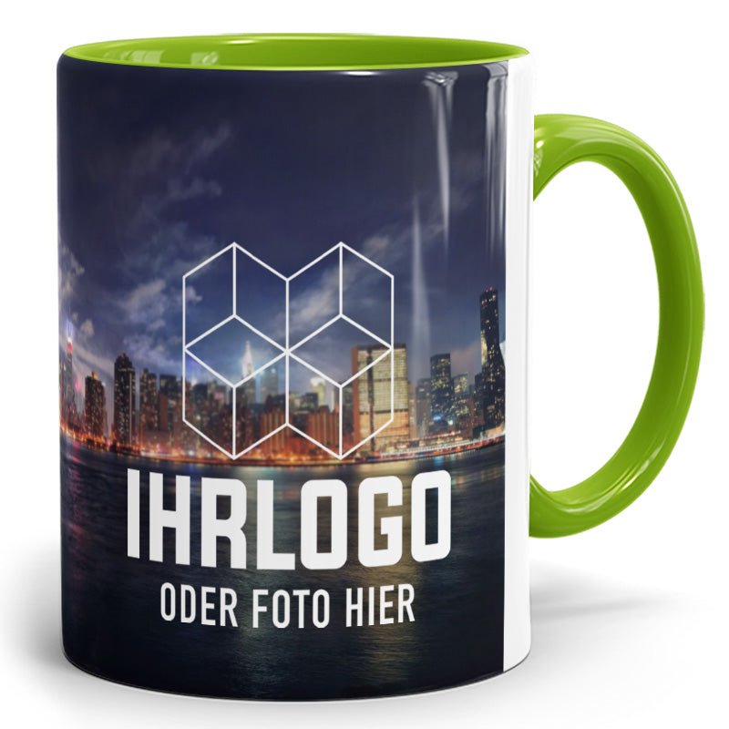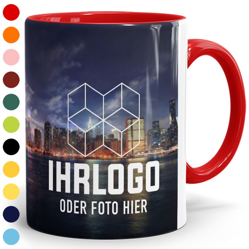 Diese Panorama Zweifarbtassen aus Keramik sind in zwölf verschiedenen Farben erhältlich und bieten durch den Rundumdruck vom Boden bis zum Trinkrand außergewöhnlich viel Platz für Ihre Motive. Ideal für alle, die ihre Designs großflächig und detailreich präsentieren möchten. Tassen geeignet für die Spülmaschine.